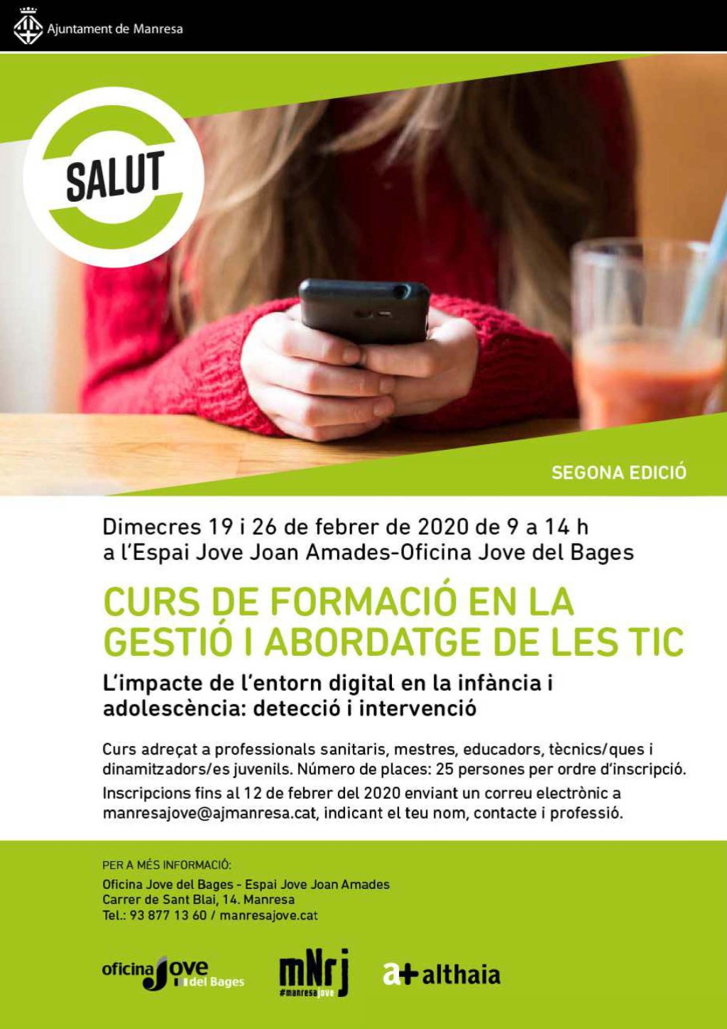 Des del programa de Joventut i la regidoria de Ciutat Saludable de l’Ajuntament de Manresa s’ha organitzat, per segon any consecutiu, una formació per abordar l’impacte de l’entorn digital en la infància i l’adolescència. Mitjançant aquesta formació es pretén dotar de recursos per detectar situacions problemàtiques i poder intervenir-hi de forma eficaç i efectiva.