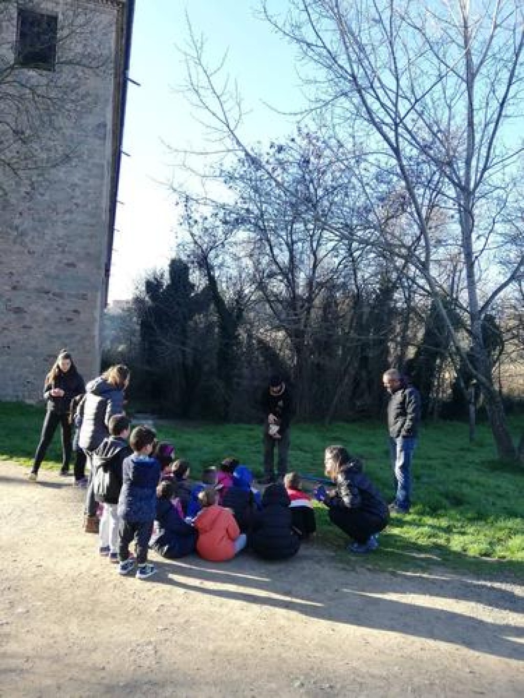 Les nenes i els nens de P5 d'aquesta escola aquest any treballen el tema dels ocells i es van interessar per les caixes niu que hi ha a la zona del Pont Nou. Les mestres van demanar a l'Ajuntament si podien instal·lar una caixa niu en aquesta zona. Des de Parcs i Jardins es va facilitar una caixa niu professional i es va col·locar en un àlber a tocar de la Fàbrica dels Panyos, amb la col·laboració del biòleg i expert ornitòleg Marc Illa, que va donar tot d'explicacions a les nenes i als nens. La caixa niu ha estat apadrinada pels nens de P5 que juntament amb les mestres en faran el seguiment per veure si realment els ocells fan niu en aquesta caixa.