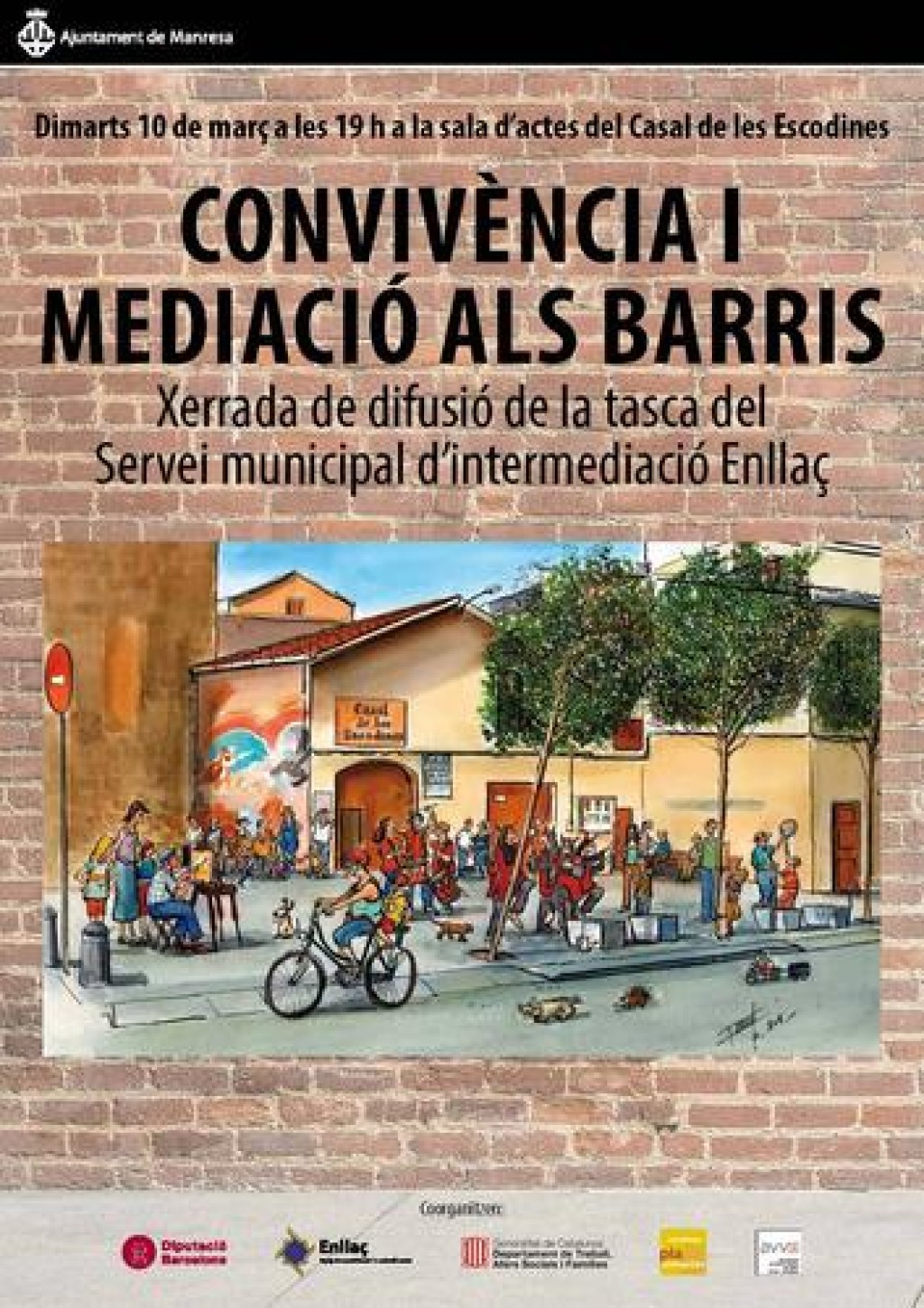 La xerrada del dia 10 està coorganitzada per Ajuntament de Manresa (Servei d’intermediació veïnal i comunitari “Enllaç”) i l’associació de veïns i veïnes del barri de les Escodines i el seu Pla de Desenvolupament Comunitari.