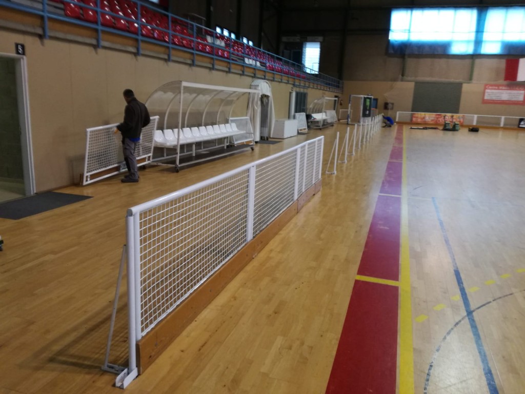 Aquest treballs, que es preveu que durin unes 3 setmanes, consisteixen en el poliment de tota la superfície del parquet del pavelló, tornar a envernissar-lo i pintar les línies de joc de la pista (futbol sala, camp d’hoquei i els cercles de patinatge).