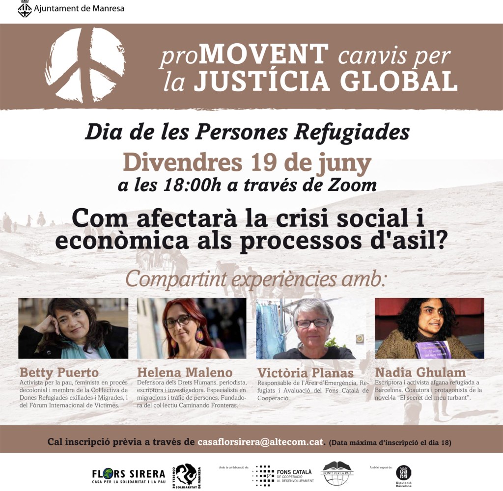 Per aquest motiu, la regidoria de Cooperació de Ajuntament de Manresa i la Casa Flors Sirera vol donar veu a persones que coneixen molt directament aquesta situació. A través d’una taula rodona en línia es reflexionarà sobre l’impacte en l’exercici del dret a l’asil arreu del món arran de la crisi econòmica i social derivada de la Covid-19. La xerrada, que s’emmarca en el Dia Internacional de les Persones Refugiades, tindrà lloc a través de la plataforma Zoom el divendres 19 de juny a les 18 h.