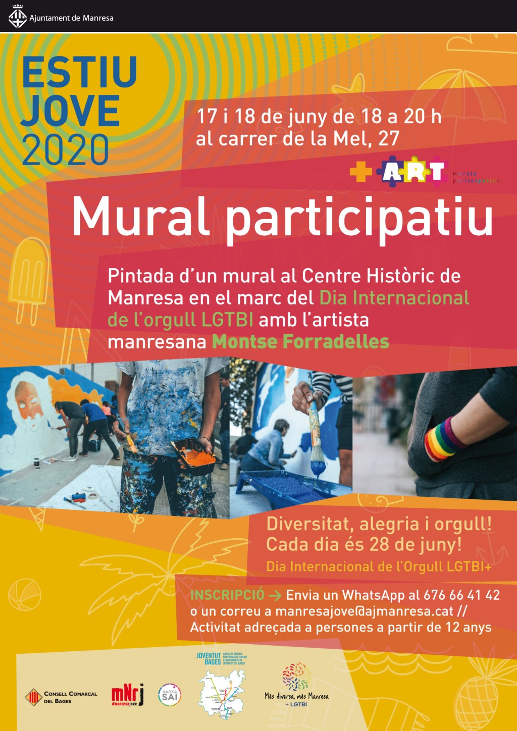 El mural forma part de les activitats d’enguany d’Estiu Jove 2020 de Manresa Jove i del projecte del Consell Comarcal del Bages +Art, i compta amb la col·laboració dels Serveis d’Atenció Integral (SAI) LGTBI de Manresa i del Bages.