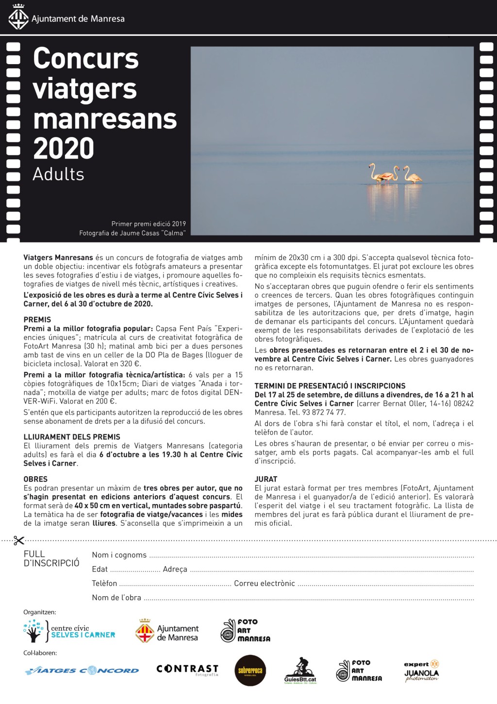 Les bases completes del Concurs Viatgers Manersans (adults) 2020 es poden consultar al Facebook i Instagram de Manresa Cultura.