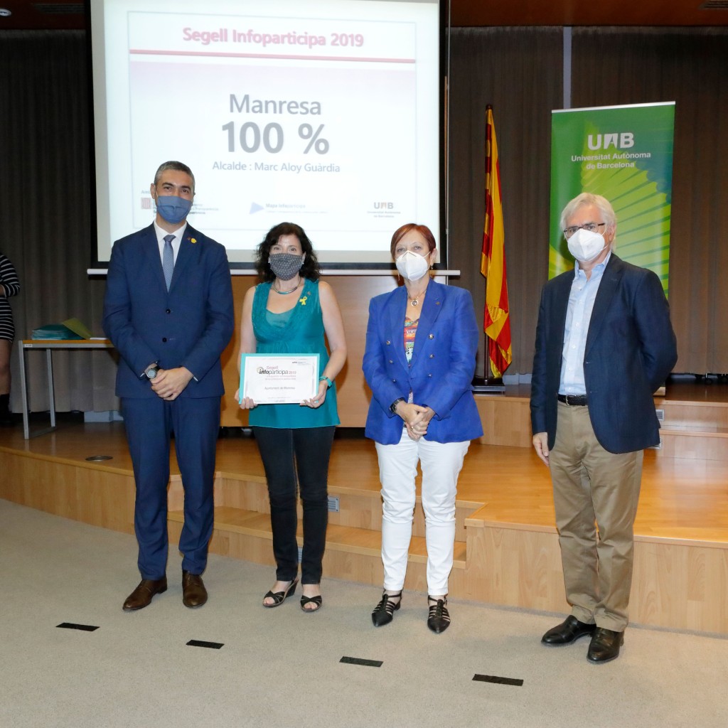 L’acte de lliurament dels guardons va tenir lloc aquest dilluns a la tarda, en una cerimònia que va comptar amb la rectora de la UAB, Margarita Arboix Arzo, i el conseller d’Acció Exterior, Relacions Institucionals i Transparència, Bernat Solé Barril. L’Ajuntament de Manresa és un dels 36 ajuntaments catalans que han obtingut el 100% de puntuació.