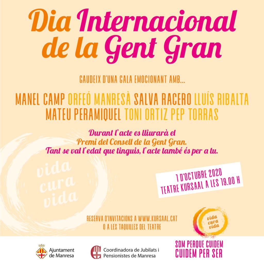El Dia Internacional de la Gent Gran està organitzat per la Coordinadora de Jubilats i Pensionistes de Manresa, el Consell Municipal de la Gent Gran i la Regidoria d’Infància, Joventut i Persones Grans de l’Ajuntament de Manresa. Es tracta d’una celebració que té l’objectiu de reconèixer el treball, l’experiència i l’aportació social de les persones de més de 65 anys.