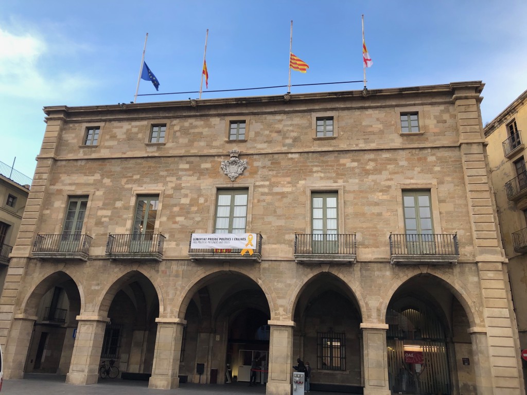 Les banderes de l'Ajuntament onegen aquest dijous a mig pal amb motiu del 80è aniversari de l'afusellament del president Lluís Companys