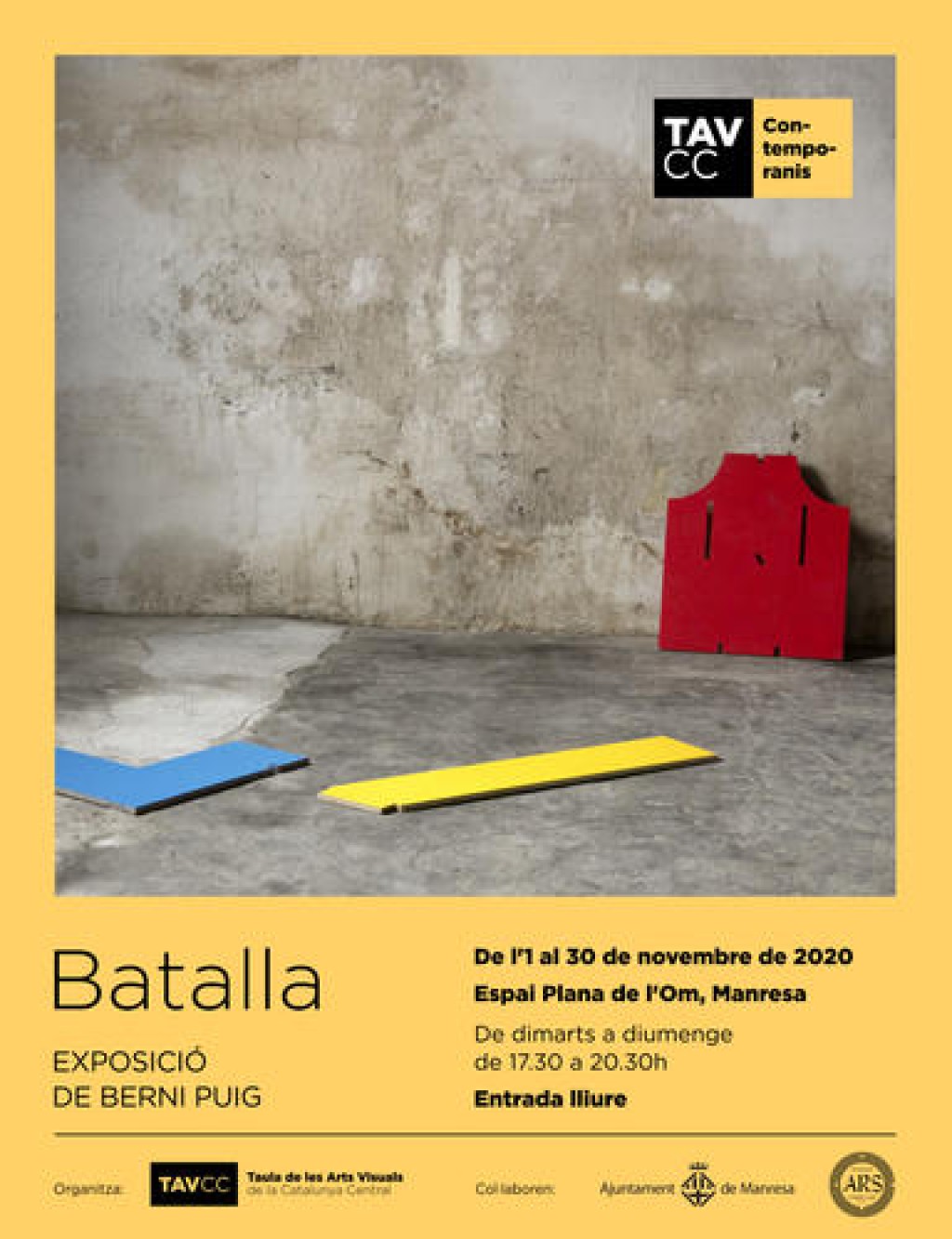La Taula de l’Arts Visuals de la Catalunya Central (TAVCC) recupera el cicle “Contemporanis” amb una exposició titulada «Batalla» de l’artista Berni Puig. La mostra es podrà veure a l’Espai Plana de l’Om de Manresa de l’1 al 30 de novembre, en horari de dimarts a diumenge de 17.30 a 20.30 h. L’exposició compta amb la col·laboració de l’Ajuntament de Manresa i la Fundació Ars Garriga Mir.
