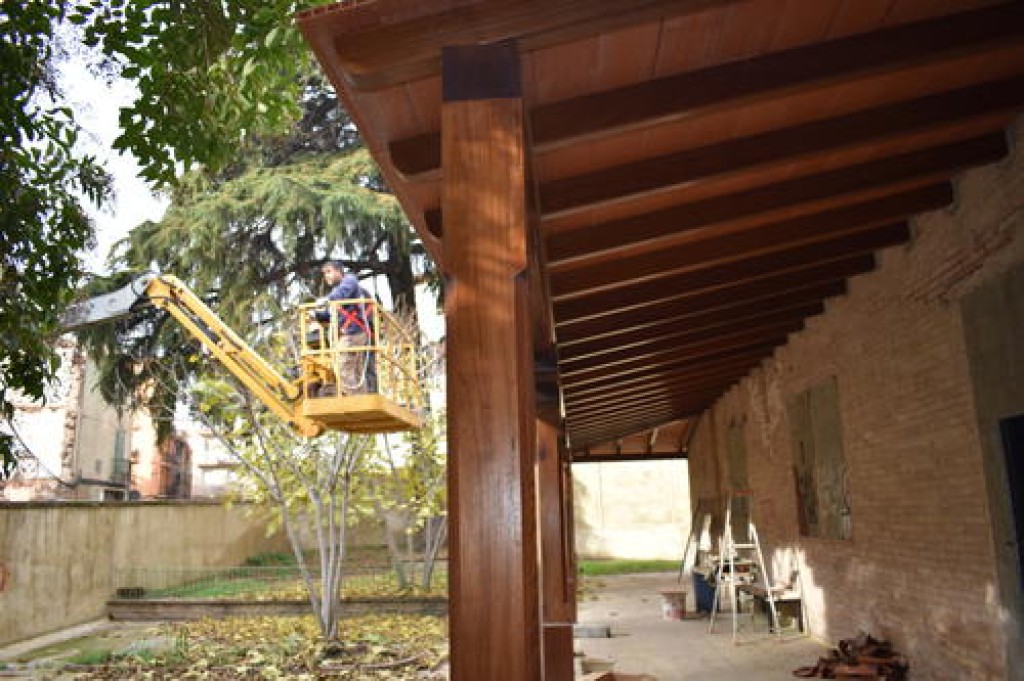 Els treballs van arrencar aquest estiu amb l’enderrocament del porxo, que es trobava en molt mal estat, i la construcció d’un de nou que s’ha executat amb fusta d’iroko copiant la forma de l’original. En aquests moments, s’està afrontant la part principal de l’obra, que consisteix en el reforç i consolidació de l’estructura de l’edifici i en la reforma de la coberta, uns treballs que tenen l’objectiu de garantir la seguretat de l’immoble per poder-ne fer ús.