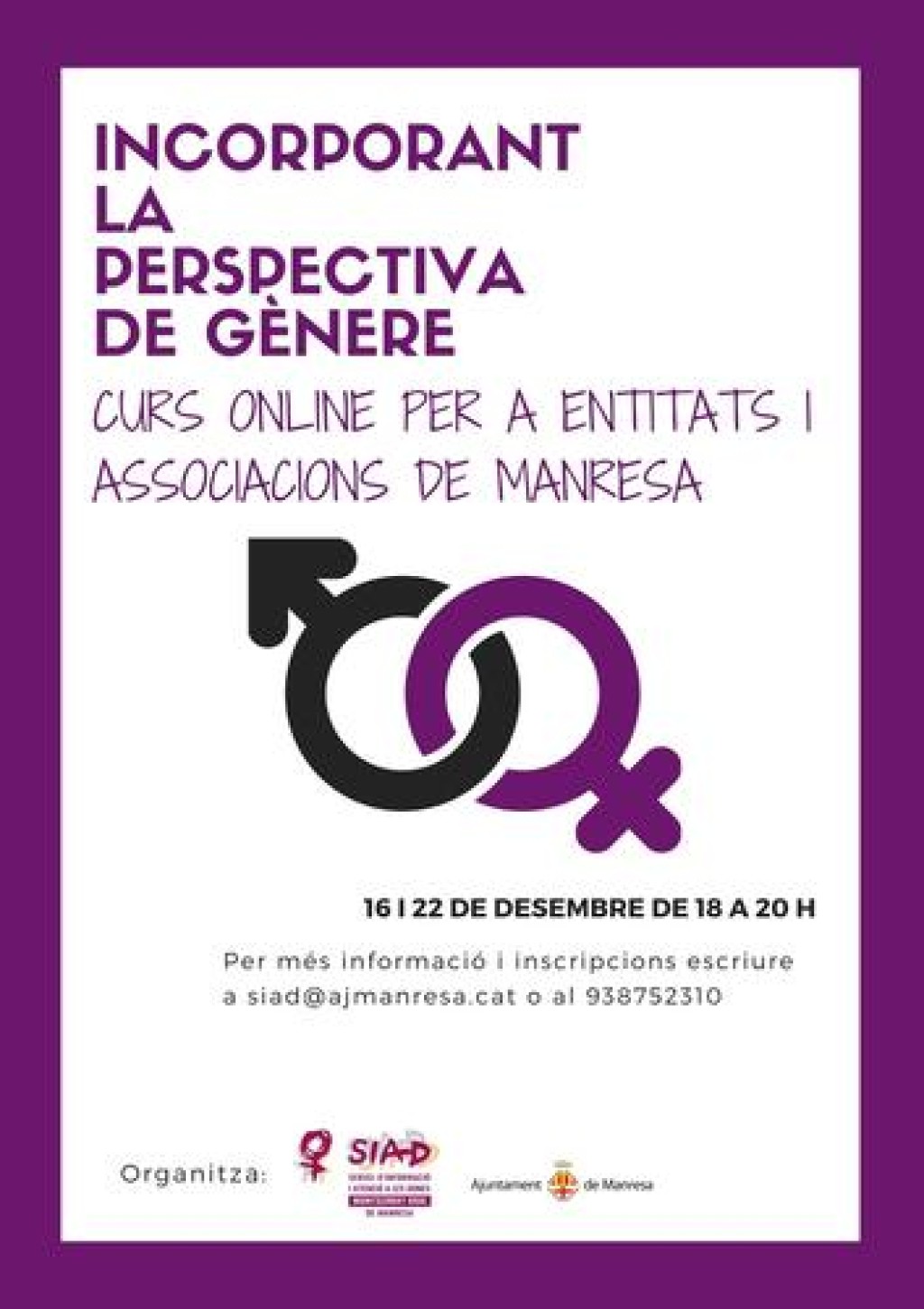 30/11/2020El curs, que serà en format virtual, tindrà una durada de 4 hores repartides en dos dies i serà amb metodologia oberta i participativa. Aquelles persones interessades s'han d'inscriure’s a través del correu siad@ajmanresa.cat o bé trucant al telèfon 938752310
