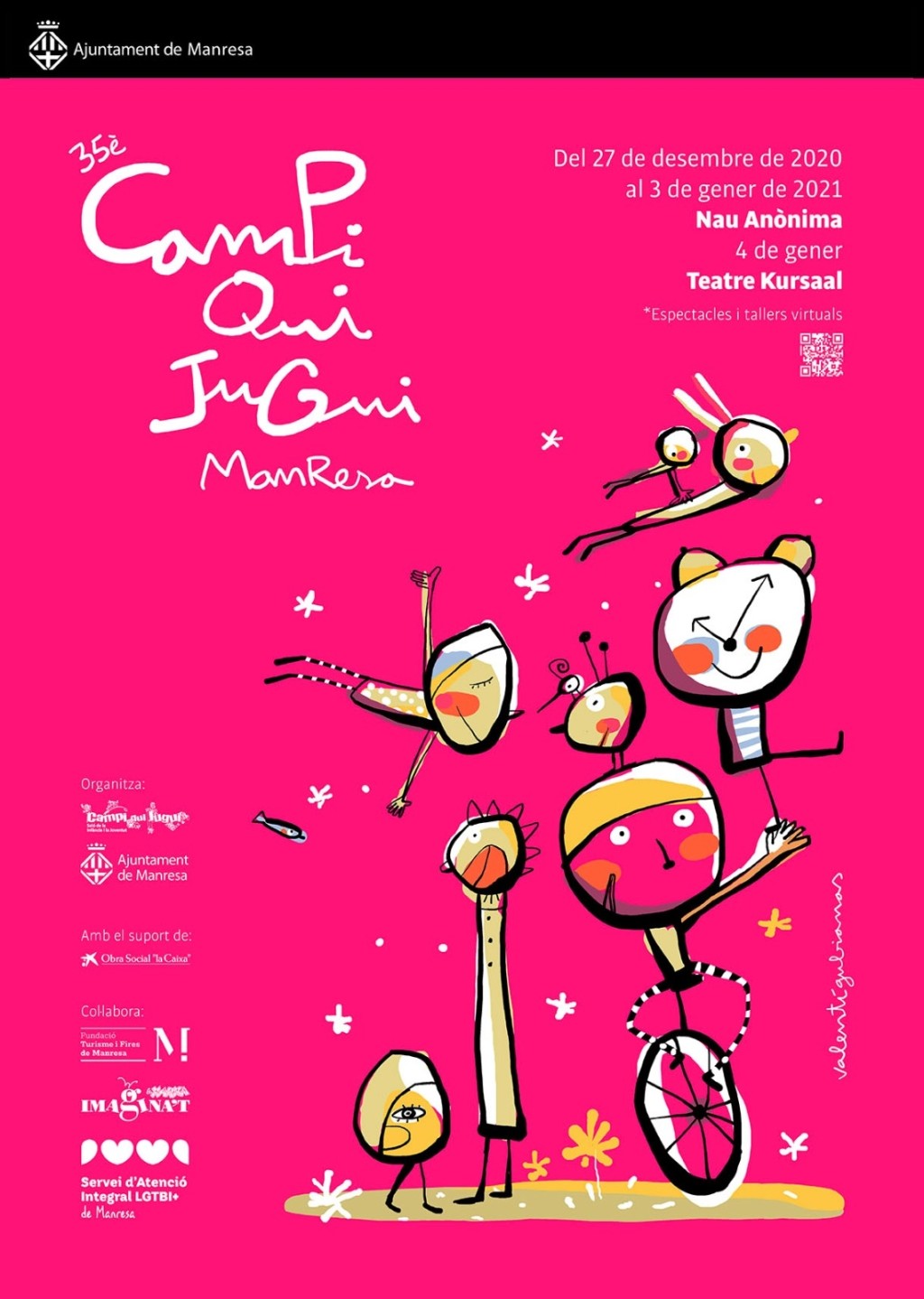 Els infants de Manresa podran gaudir aquestes festes de Nadal del Campi qui Jugui. Serà un Campi diferent al d’altres anys, adaptat totalment a les mesures anti-Covid. Se celebrarà del 27 de desembre al 4 de gener, amb aforament limitat i control d’accés, i estarà conformat de tallers virtuals i d’espectacles, que se celebraran a l’Anònima i també al Teatre Kursaal, on es farà el concert final de Xiula, que servirà per celebrar els 35 anys del saló de la infància.
