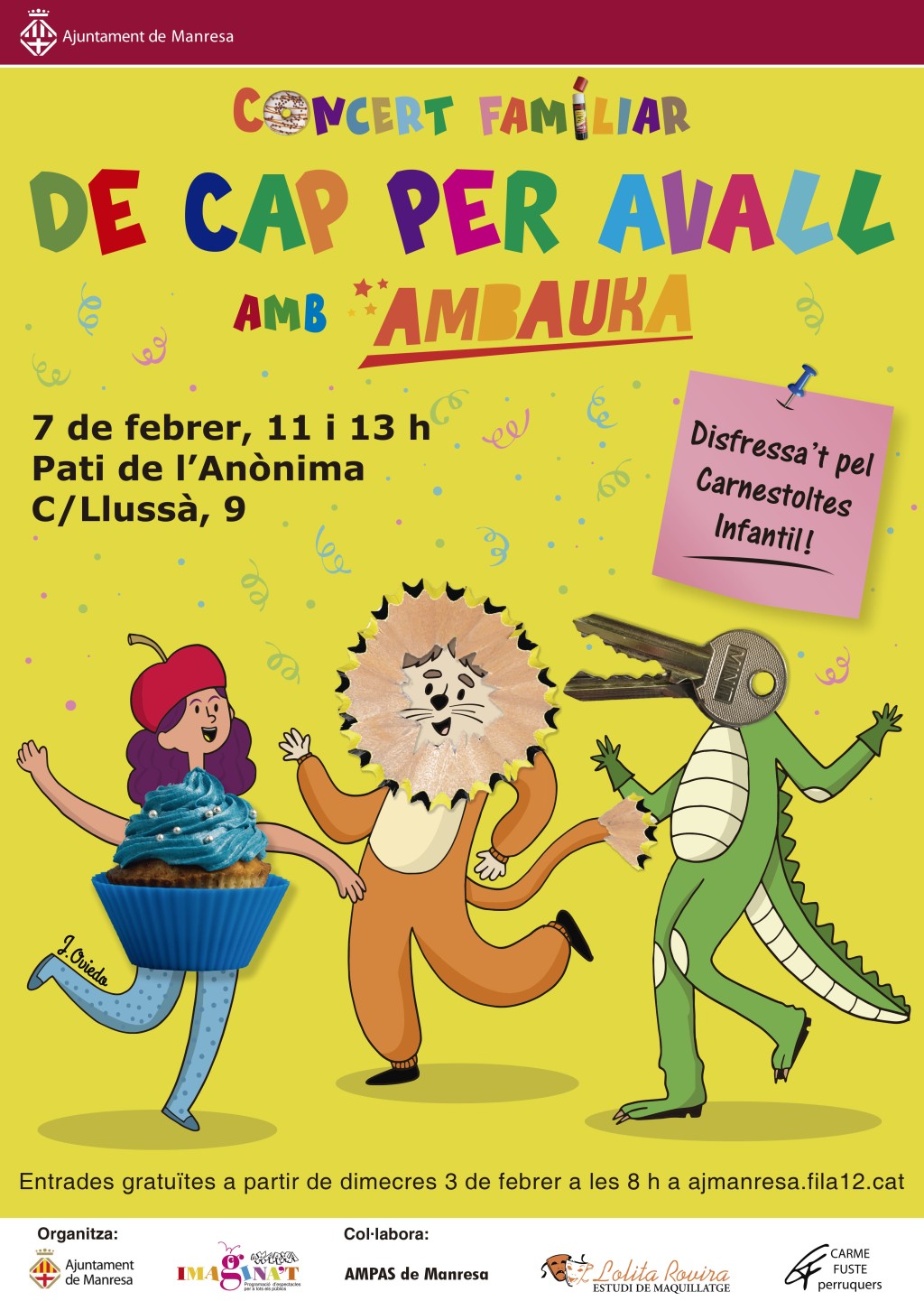 L'espectacle anirà a càrrec del grup Ambauka i es titula "De cap per avall". És una proposta que dóna nom al tercer disc d'una formació musical que des del 2008 presenta uns espectacles altament participatius, enèrgics i per a totes les edats, amb música 100% en directe i combinant sons i músiques populars i modernes.
