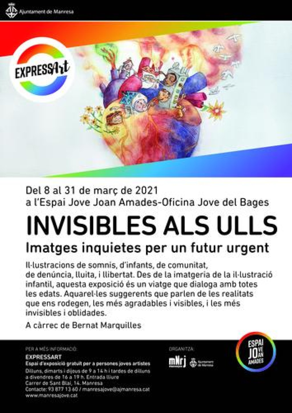 L’Espai Jove Joan Amades – Oficina Jove del Bages acull a partir d’avui i fins al 31 de març l’exposició «Invisibles als ulls. Imatges inquietes per un futur urgent», de l’artista manresà Bernat Marquilles Holgado.
