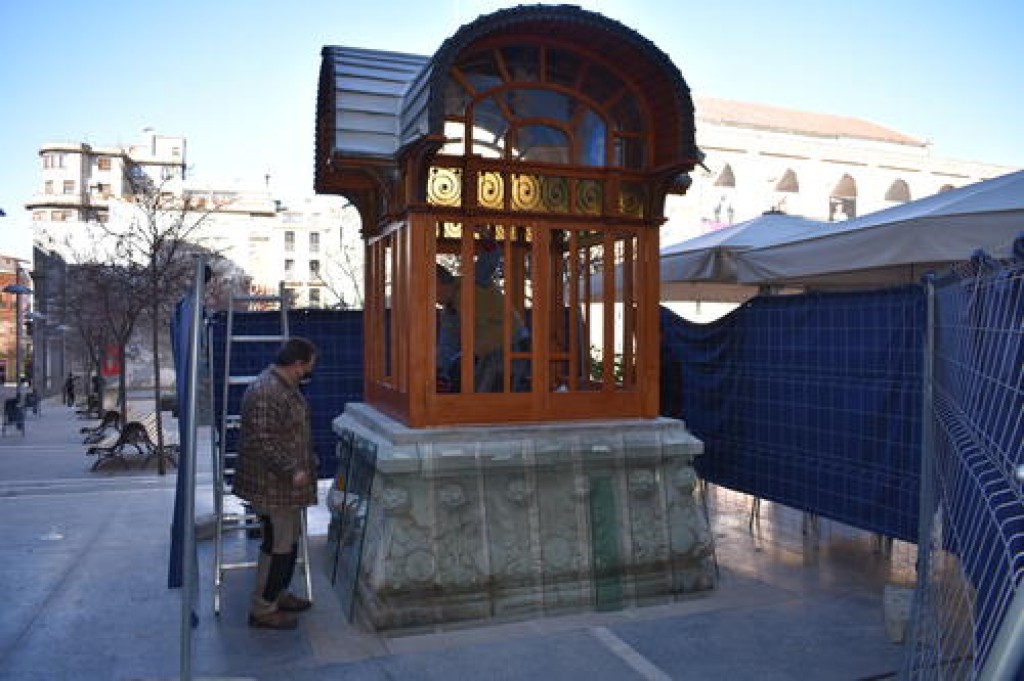 Comencen els treballs d'instal·lació del quiosc modernista de l'Arpa després de ser restaurat