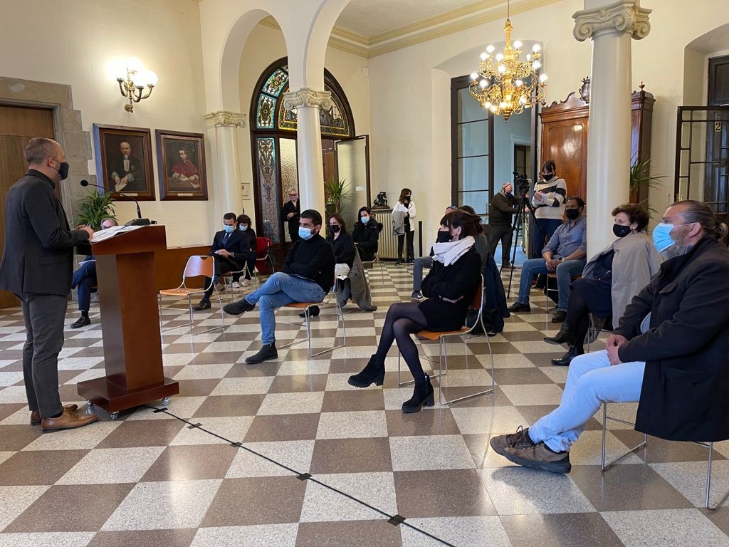 Abans de la presentació d’avui, s’ha fet una reunió de treball al Saló de Sessions de l’Ajuntament, amb el conseller i l’alcalde, els regidors Mariona Homs Alsina i Josep Gili Prat, representants de la Fundació La Caixa i també de la cooperativa Gedi (amb el seu responsable, Robert Fornés, a més d’Alba Rojas i l’equip d’educadors que participen al programa).