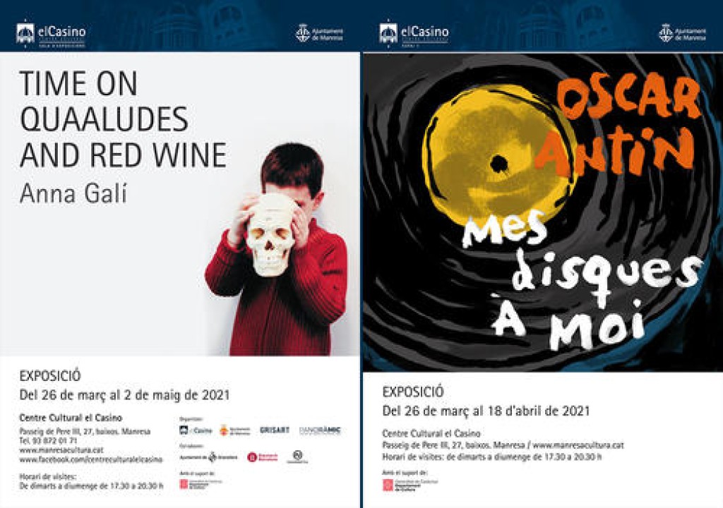 24/03/2021“Time on Quaaludes and Red Wine” d’Anna Galí es podrà visitar a la Sala d’Exposicions fins al 2 de maig; i “Mes disques à moi”, d’Òscar Antin, a l’Espai 7 fins al 18 d’abril.