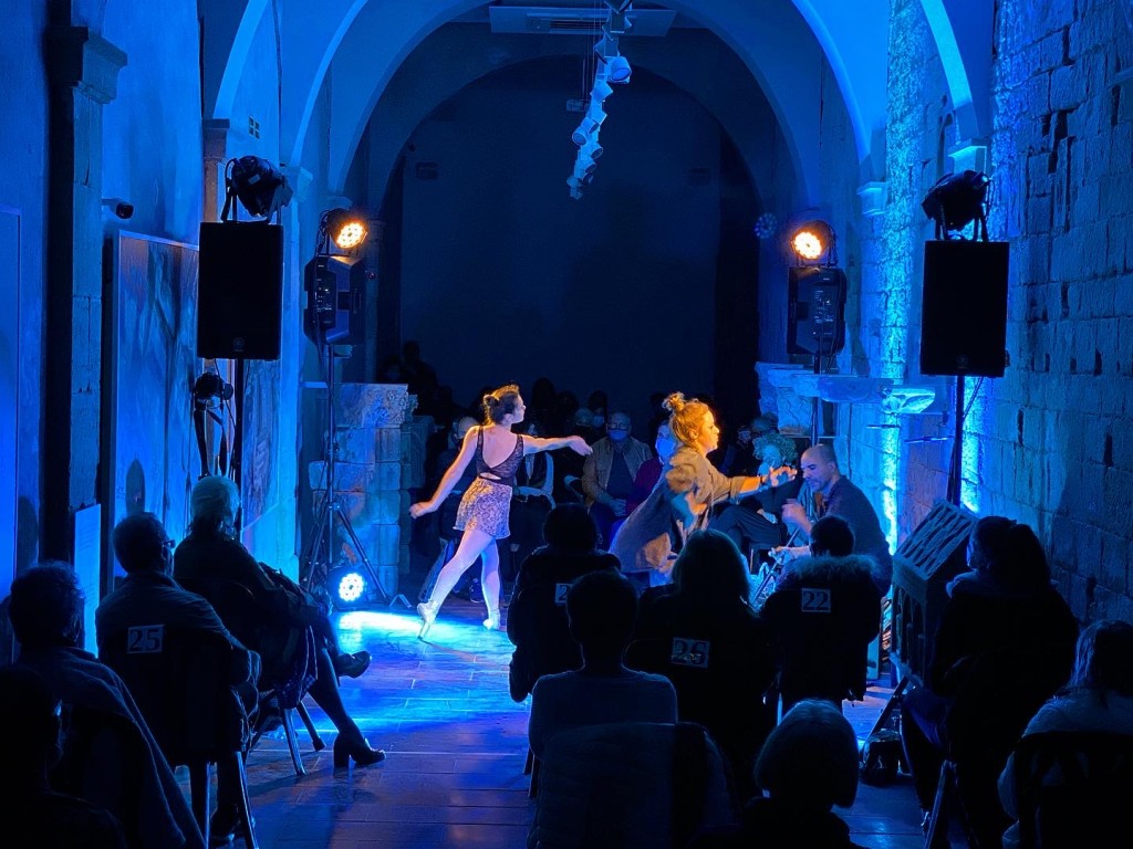 L’aforament de l’Espai Manresa 1522, adaptat a les mesures que estableix el Procicat en actes culturals amb públic en museus i sales d'exposicions, arxius i biblioteques, es va omplir per veure com el percussionista Santi Serratosa i les ballarines Júlia Isanta i Laura Isanta dialogaven en directe, tot improvisant un espectacle i donant lloc a una creació de petit format única i irrepetible. Les quaranta entrades per a veure aquest espectacle ja s’havien esgotat dies abans.