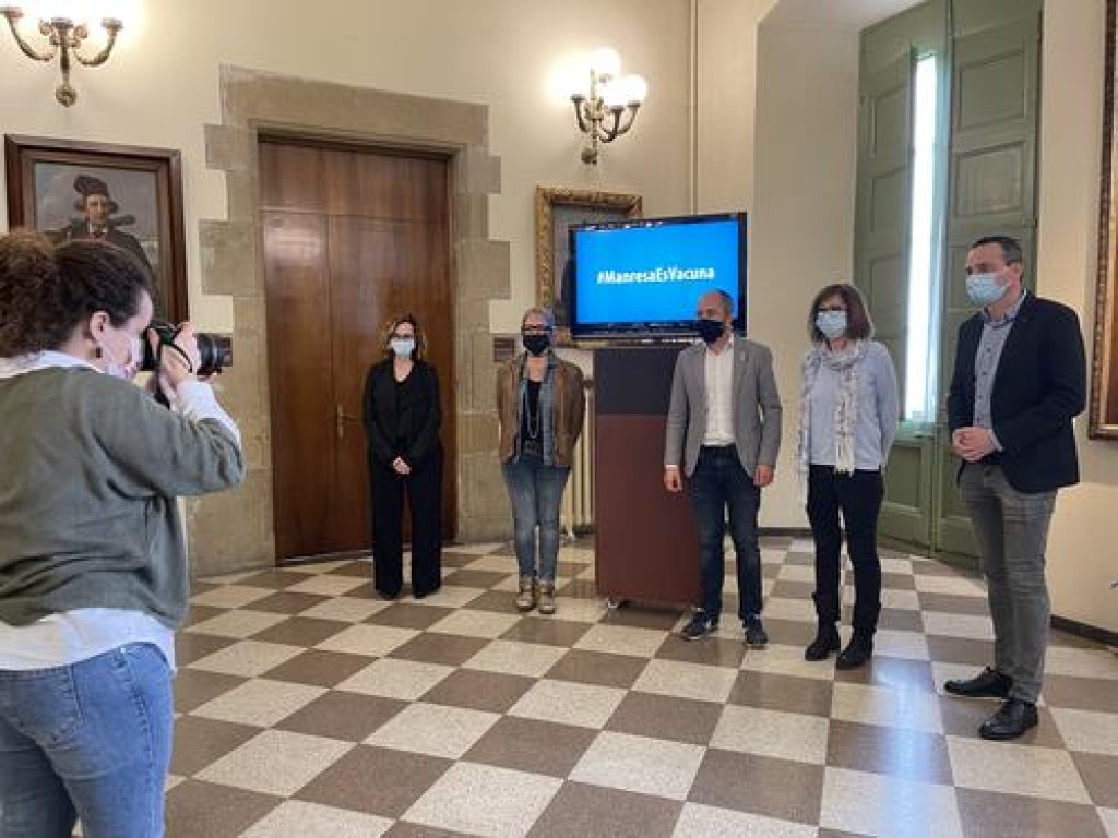 La sala de columnes de l’Ajuntament de Manresa ha acollit aquest dimarts al matí la presentació de la campanya ‘Manresa es vacuna’, una iniciativa de l’Ajuntament i de la delegació del Bages del Col·legi de Metges de Barcelona que, a través d’un vídeo, pretén incentivar la vacunació coincidint amb l’arribada de noves dosis a Catalunya. La campanya compta amb la col·laboració del departament de Salut i de l’Institut Català de la Salut, i amb la participació d’altres institucions assistencials, sanitàries, comercials, esportives i educatives.
