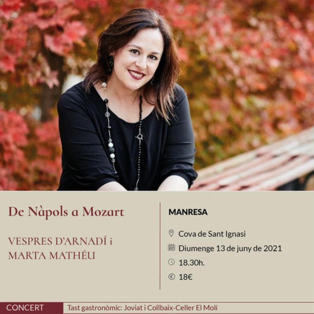 08/06/2021La soprano Marta Mathéu, una de les veus amb major projecció internacional de casa nostra, serà l’encarregada de cloure la quarta edició d’Espurnes Barroques al costat de l’orquestra Vespres d’Arnadí, dirigida per Dani Espasa. El concert serà diumenge 13 de juny a les 18.30 h, a la Cova de Sant Ignasi.