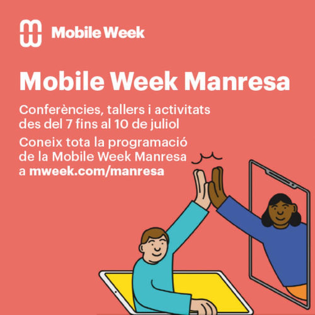 Del 7 al 10 de juliol la capital del Bages acollirà la primera edició de la Mobile Week Manresa, una iniciativa vinculada al Mobile World Capital Barcelona que té per objectiu apropar la tecnologia a la ciutadania. Durant quatre dies, es duran a terme una quinzena de xerrades i tallers gratuïts adreçats a tots els públics en diferents espais de la ciutat. Les sessions, que complementaran els formats virtual i presencial, estaran conduïdes per ponents i experts reconeguts del món digital. Les persones interessades a assistir en alguna de les activitats, poden inscriure’s a través d’aquest enllaç.