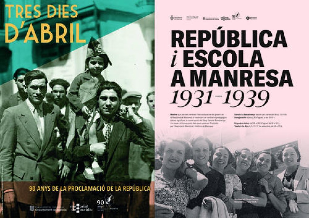 Dins dels actes de la Festa Major de Manresa, demà dijous 26 d’agost, a les 19.15 h, tindrà lloc a l’escola La Renaixença la inauguració de dues exposicions relacionades amb la commemoració del 90 anys de la proclamació de la República. Les mostres es podran visitar fins al 30 d’agost, i els dies 4, 5, 11 i 12 de setembre en horari de 18 a 20 h. L’entrada a les exposicions a l’escola Renaixença és pel carrer del Bruc, 112-114.