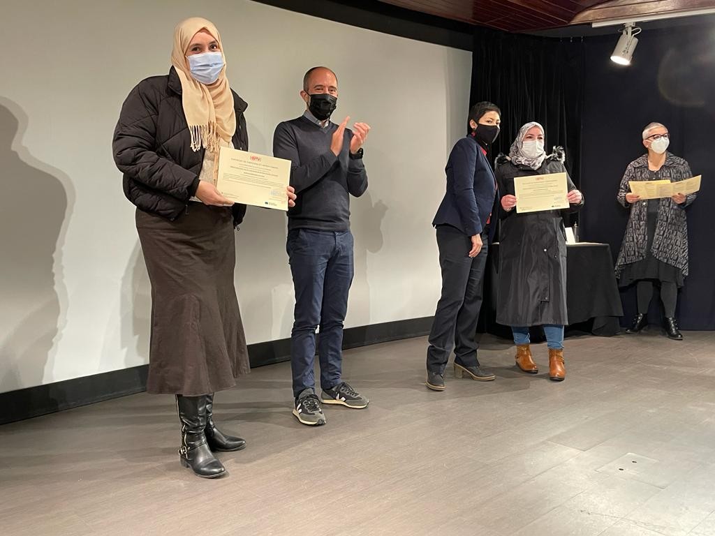 29/11/2021Fins a 108 persones han recollit aquest matí els certificats acreditatius dels cursos de primera acollida i de cures de la Llar que ha realitzat la Fundació EMI a Manresa, finançats per la Generalitat i amb el suport de l’Ajuntament de Manresa. Els cursos inclouen llengua catalana, coneixement del món laboral i coneixement de la societat catalana i serveixen per obtenir el certificat d’acollida. A més, s’ha ofert formació específica en cures de la Llar per facilitar el camí laboral de les persones usuàries.