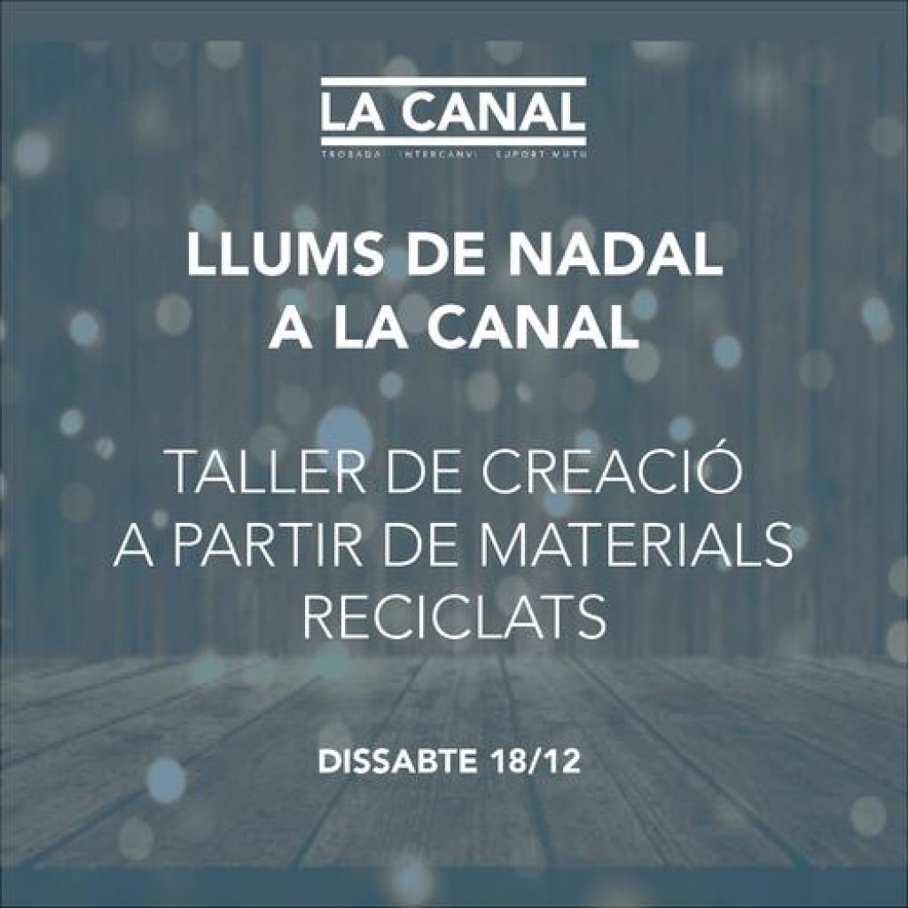 L’espai de La Canal tancarà el seu primer any de funcionament al local de la Baixada dels Drets (número 7-9) amb una jornada que tindrà lloc el dissabte 18 de desembre (de 10 a 14 h i de 16 a 20 h) que inclourà un taller de creació de llums de Nadal a partir de material reciclat i una trobada de sopes, en la qual els participants del taller i el veïnat del voltant podran portar una sopa (o el plat que es vulgui).