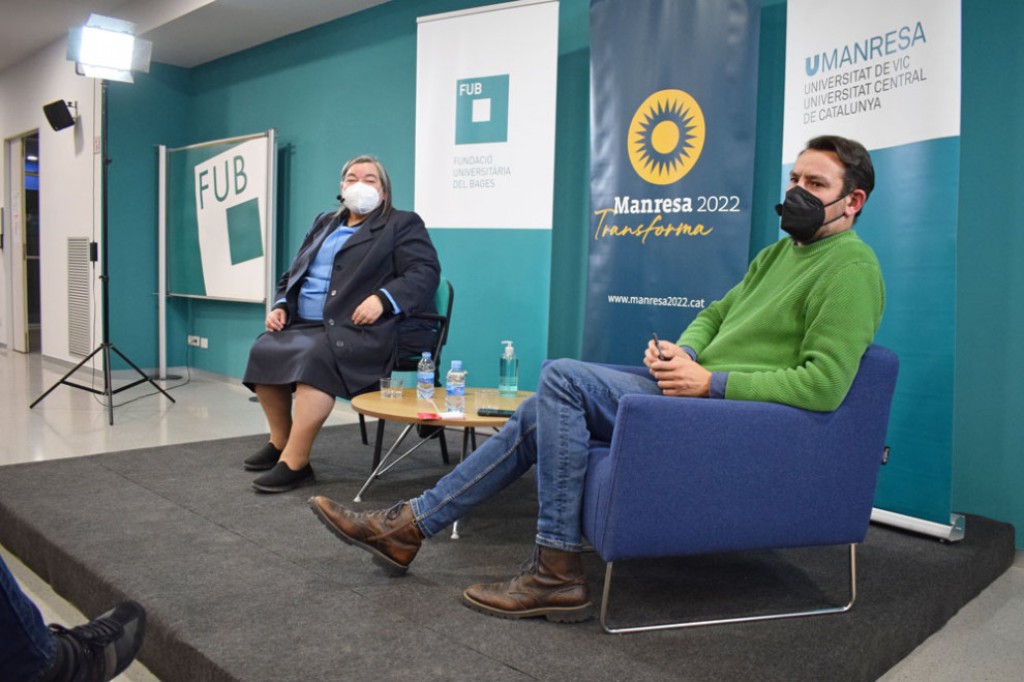 La delicada situació del català és reversible si som conscients de la situació i l’utilitzem en la nostra vida diària. Aquest va ser un dels missatges de la lingüista Carme Junyent, protagonista, juntament amb el comunicador Òscar Andreu, del primer dels diàlegs de l’Àgora 2022 que es va fer a UManresa el passat divendres. Junyent i Andreu van repassar, amb humor però també amb rigor, la situació del català a la societat i a l’escola. Junyent va explicar que ja fa vint anys que hi ha senyals que el català és una llengua amenaçada, però que la situació és reversible. “Si volem la llengua, no ens la poden prendre”, va afirmar, i si la salvem “haurà estat una cosa de tots i aquest és un gran objectiu social i de cohesió”. Ara estem, segons Junyent, en un moment de transició que hem d’aprofitar perquè el fet que hi hagi gent de moltes cultures que la parla ajuda a protegir la llengua. El que és important és que els nous parlants utilitzin el català, encara que ho facin malament perquè “tots, quan comencem a parlar una nova llengua, ho fem malament”. Per això va advertir que no ajuda gens “la legió de correctors” que hi ha a xarxes com Twitter i que “fan humiliacions públiques que ens van a la contra”.