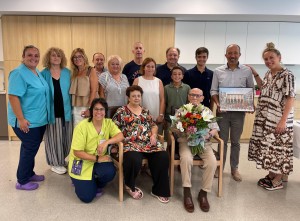 La Residència de Sant Andreu ha acollit aquest matí una petita festa que ha reunit familiars, companys i personal del centre. També hi ha assistit l’alcalde de Manresa, Marc Aloy Guàrdia, que li ha lliurat un obsequi i un ram de flors, en nom del consistori.