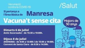 Manresa farà dimarts i dijous una marató de vacunació sense cita contra la Covid per a majors de 30 anys